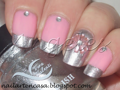 A pesar de no ser el estilo de manicura que normalmente presento, quienes me conocéis desde hace tiempo ya sabéis que de vez en cuando me da la vena "cute" y os sorprendo con algo así. En esta ocasión puedo afirmar que el resultado final me gusta ya que el esmalte plata consigue realzar la suavidad del tono de base dándole un acabado lujoso, el cual se acentúa con la pedrería.