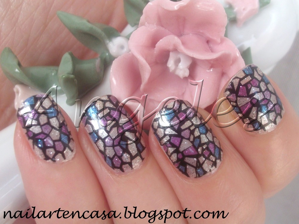 Del grupo de las de flores, que también llevan glitter, escogí estas tres. Las partes que se aprecian en tono plata son transparentes, lo que se ve es la purpurina. Las de la izquierda son mis favoritas, aunque las del centro pueden dar mucho juego aplicándolas sobre fondo plata, blanco o incluso negro.
